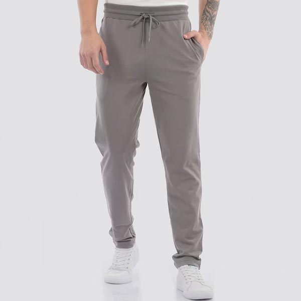 Grey solid regular-fit mid-rise track pant, has an elasticated waistband with drawstring closure and two side pockets