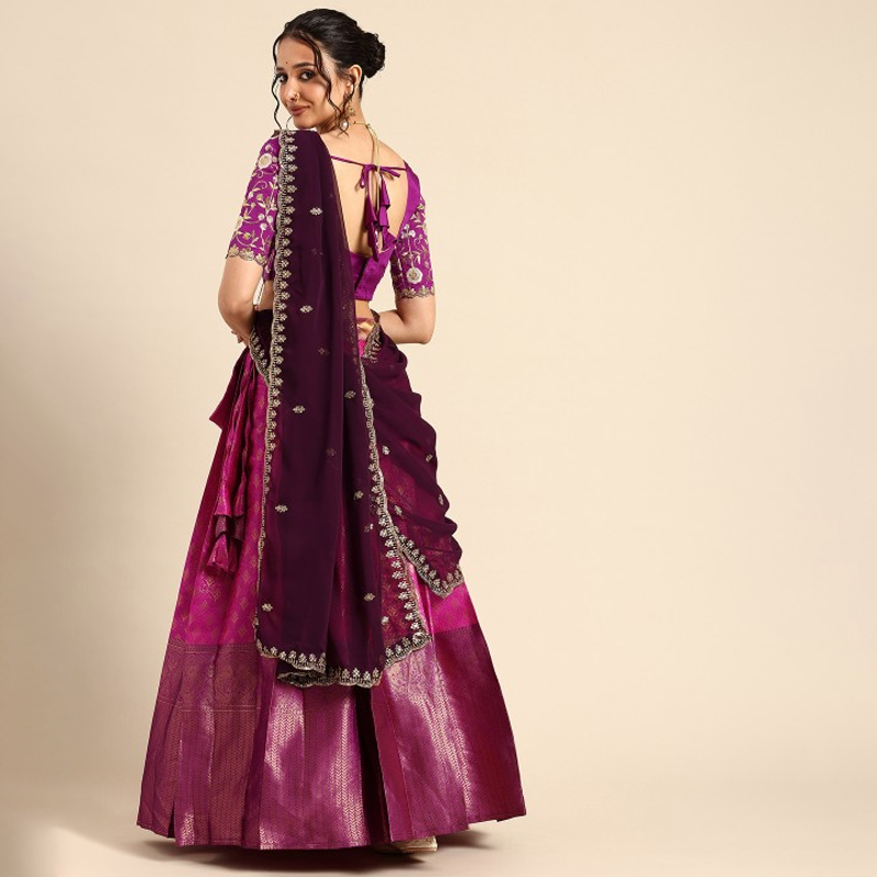 Embroidered Sequinned Semi-Stitched Lehenga & Unstitched Blouse With Dupatta